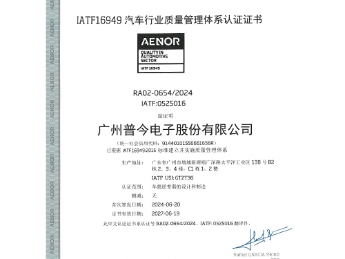 • Guangzhou Pujin Electronics has successfully obtained the IATF 169...